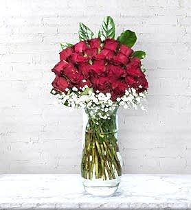 Aşkınıza unutulmaz bir sürpriz yapmak ister misiniz? Silindir cam vazoda cipso ve yeşilliklerle süslenmiş 25 adet kırmızı gül sevdiğinizin kalbini yeniden fethedecek.