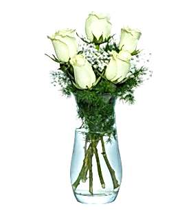 Sevdiklerinizin mutlu anlarını zarif sürprizinizle taçlandırmak ister misiniz? Cam vazo içerisinde 5 beyaz gül ile hazırlanmış Bir Küçük Mutluluk aranjmanı, sevdiklerinizin gününe mutluluk katacak.