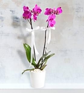 Romantik aşkların da bir sembolü olan mor orkidenin sahip olduğu göz alıcı renginin büyüsünden yararlanarak duygularınızı ifade etmeniz mümkün. Taze çiçeklerinin güzelliğiyle herkesin beğenisini kazanan çift dal mor orkidenin zarif duruşundan yararlanabilirsiniz. Duyguların en güzel yansımasını sunan mor orkideyle sevdiklerinizin gönlünü tekrar kazanabilir, her anınıza anlam katabilirsiniz. Saksılarında farklı temaları da tercih edebileceğiniz 2 dal mor orkideyi sitemizin sunduğu imkanlarından yararlanarak sipariş verme fırsatını kaçırmayın. Aynı gün içerisinde teslim olanaklarından faydalanarak sevdiklerinizi özel hissettirin.