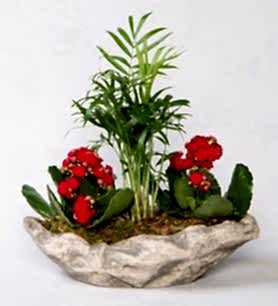 Ürün Boyutu: Chamadora Elegans . 8,5 cm, 1 Adet Kalanchoe kırmızı 5,5 cm, 2 Adet
