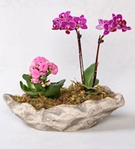 Dekoratif Saksıda Mini Mor Orkide ve Kalanchoe (Kalanşo) hakkında bilmen gerekenler: Nazlı ve narin bir bitki olan orkide ile güzeller güzeli Kalanşo çiçeğinin bir arada olduğu bu dekoratif saksının bakımını aydınlık ama direkt güneş ışığı almayan bir yerde yapmanız bitkinin daha sağlıklı büyümesine yardımcı olur.