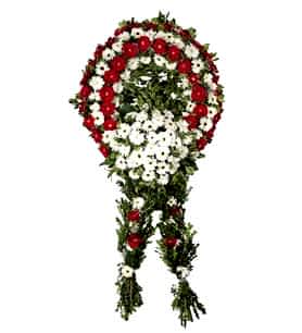 Sevdiklerinizin acısını paylaşmak, üzüntünüzü ve desteğinizi hissettirebilmeniz için Kırmızı-Beyaz Gerberalar Ayaklı Cenaze Çelengi.