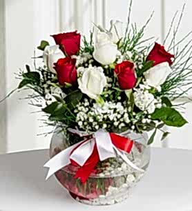 Aşkınızı en güzel şekilde dile getirecek eşsiz bir aranjman... Küre cam vazo içerisinde cipso ve yeşilliklerle süslenmiş beyaz ve kırmızı güllerden oluşan Aşk Küresi, aşkınızı bizicik sevdiğinizin kulağına fısıldayacak.