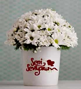 Sevginizi, baharın eşsiz güzelliği ile ifade etmek ister misiniz? Seni Seviyorum mesajlı vazo içerisinde hazırlanmış beyaz papatyalar, sevginizi en zarif haliyle dile getirecek.