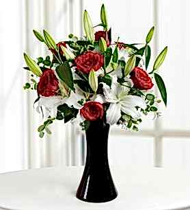 Her düş bir yıldız, her yıldız bir düş... Siyah cam vazoda beyaz lilyumlar ve kırmızı güller ile hazırlanmış Yıldızlı Düşler çiçek aranjmanı ile sevdiklerinizin düşlerine sürprizinizle ışıltı katın. Özel koleksiyon ürünü olan bu eşsiz aranjman, yeni trendlerden ilham alınarak tasarlanmıştır.