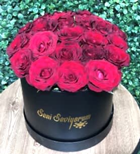 Yuvarlak Kutuda Kırmızı Gül